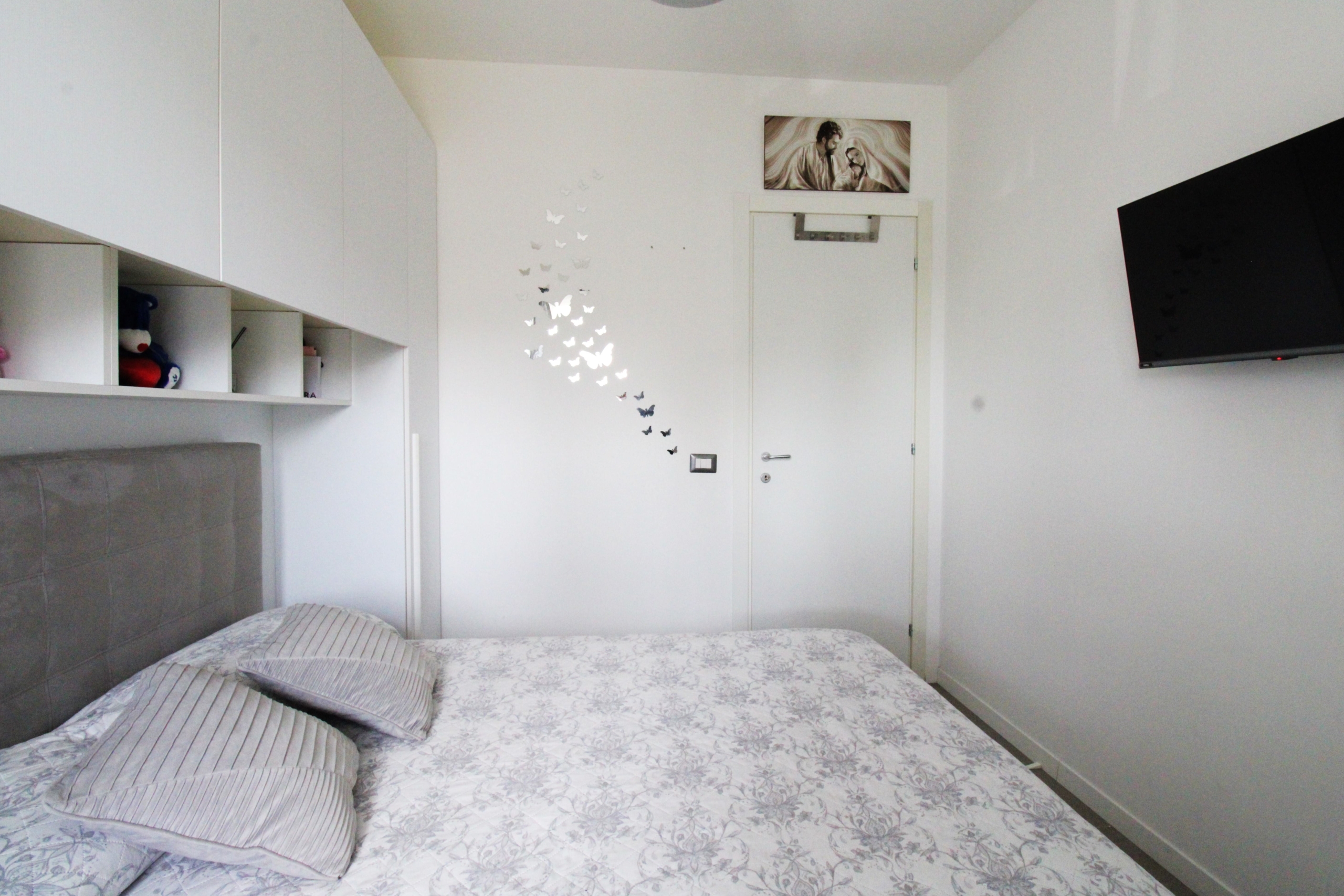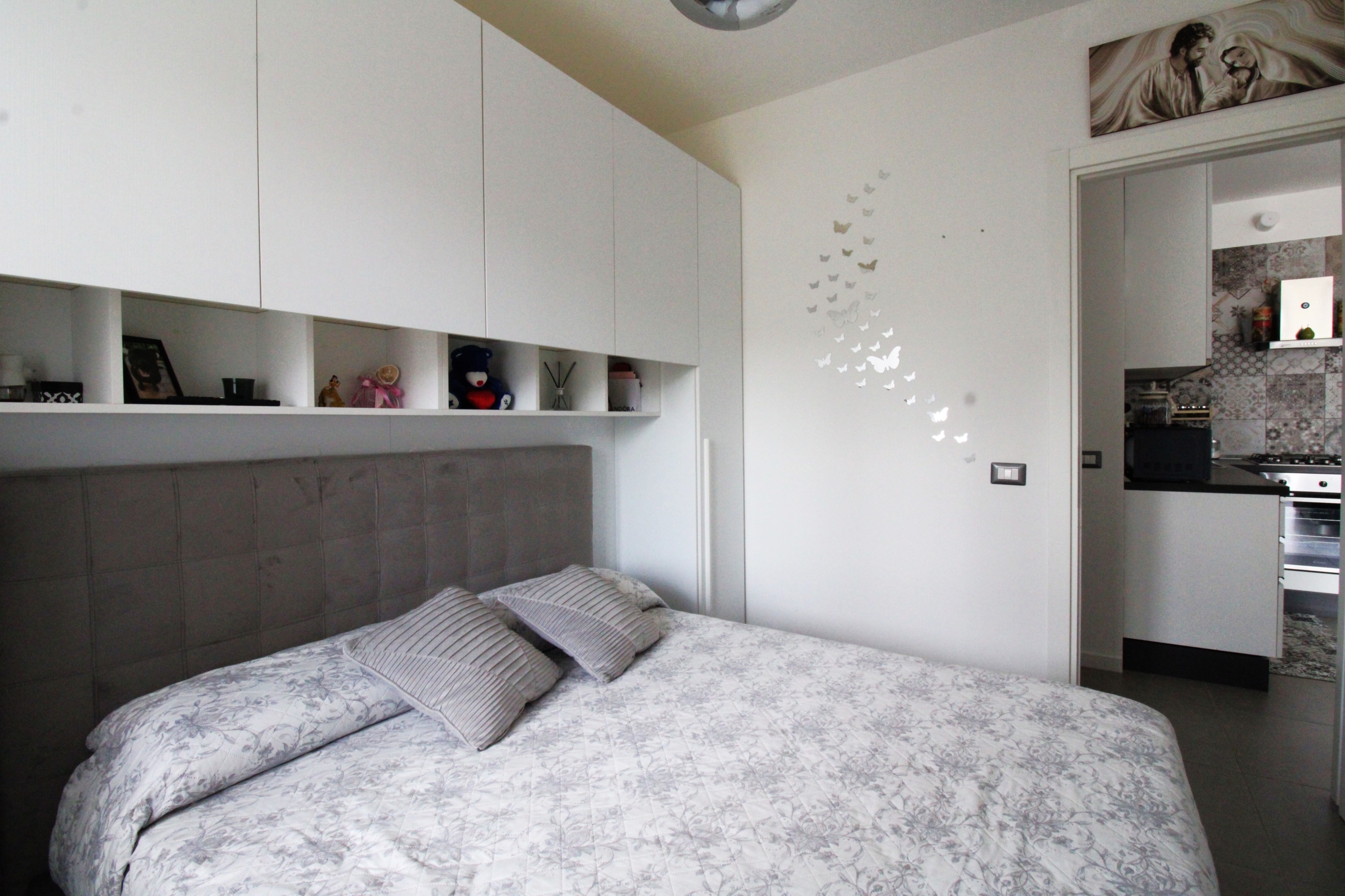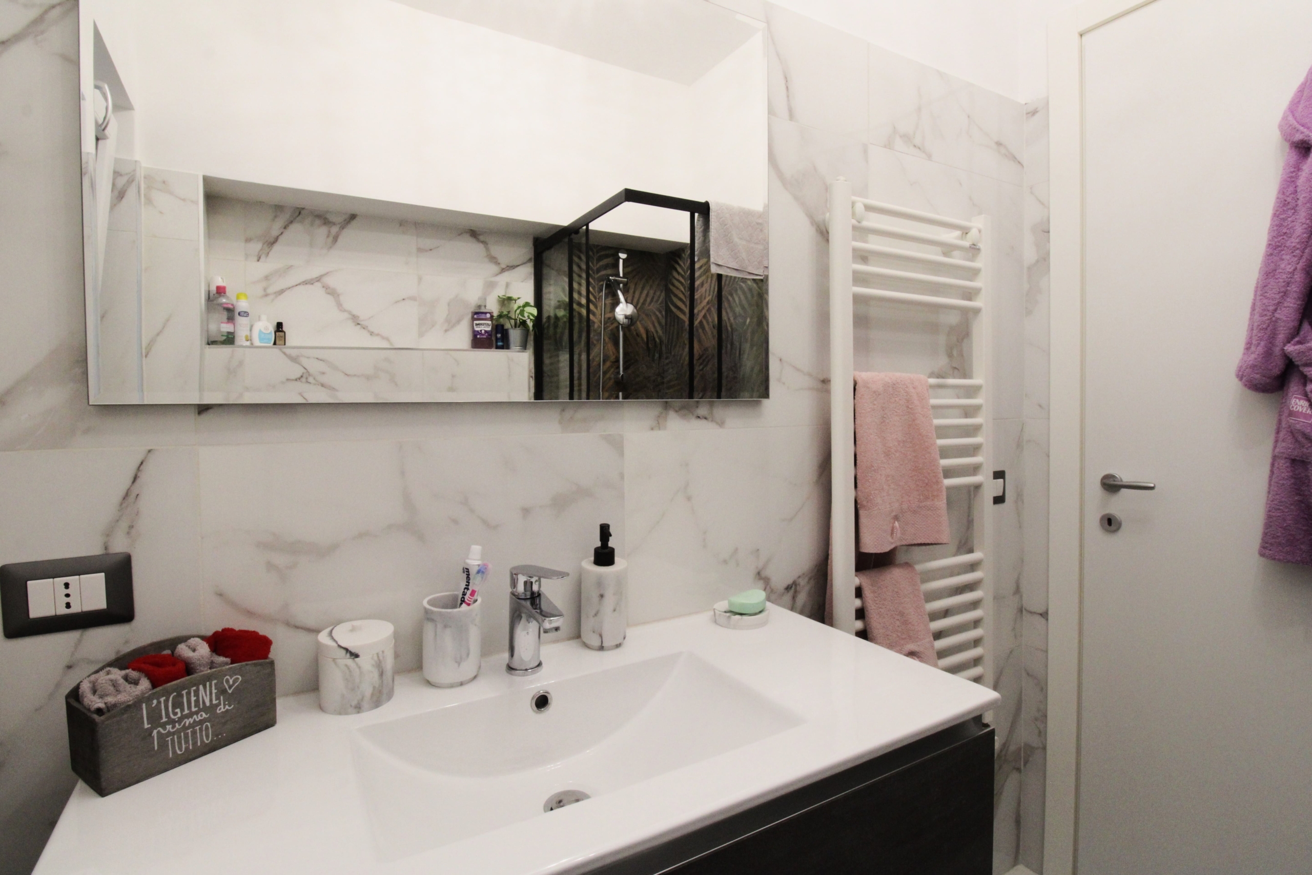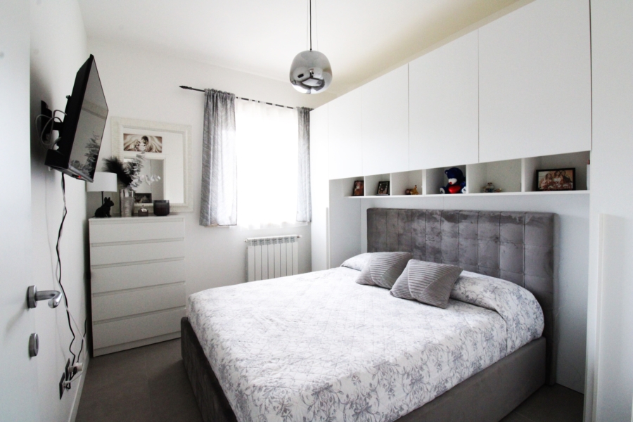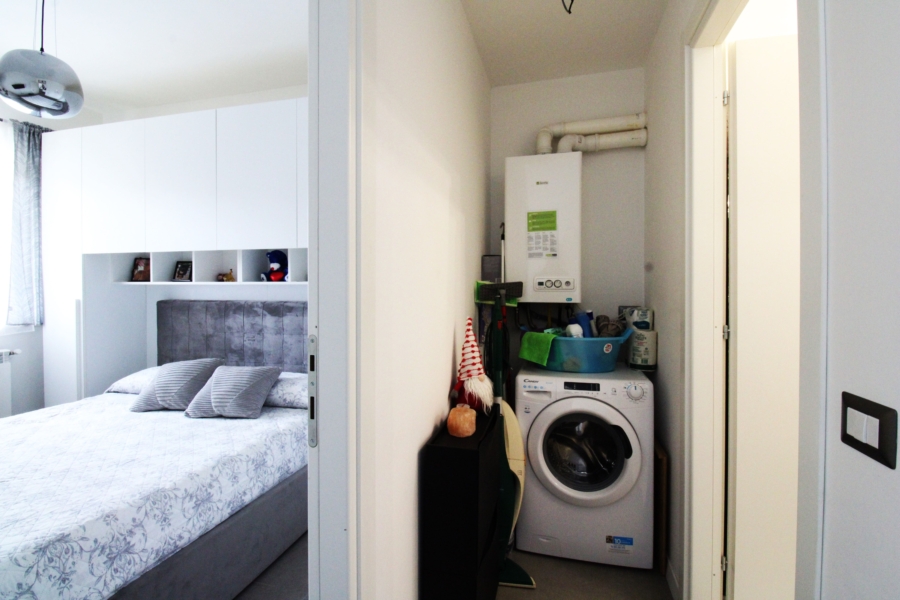 Il disimpegno invece, ci accompagna nella camera da letto e nel bagno finestrato con box doccia ed è completo di angolo lavanderia, separando ottimamente la zona giorno dalla zona notte.