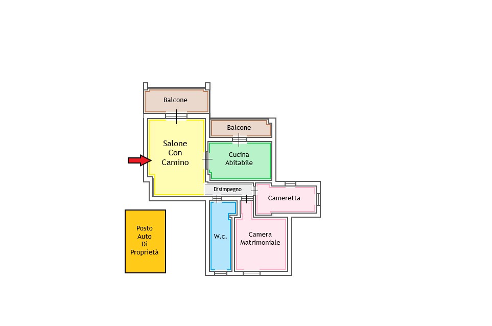 L’appartamento è stato ristrutturato anche se di costruzione recente ed è composto da un salone a vista con camino funzionante ed un balcone abitabile, una cucina di ampia metratura con balcone annesso, un comodo disimpegno che separa la zona giorno dalla zona notte dove sono presenti la camera matrimoniale, la cameretta ed il bagno finestrato con vasca idromassaggio.