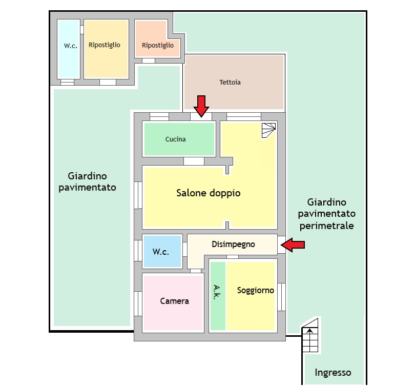 Situata in una delle zone più ricercate e tranquille di Fregene, precisamente in via Ceriale, proponiamo in vendita una porzione di villa bifamiliare degli anni ’60 di circa 150 mq, caratterizzata da una combinazione perfetta tra comfort, indipendenza e spazi generosi, in una zona residenziale lontano dal caos della città, ma a pochi passi da tutti i principali servizi e dalle splendide spiagge di Fregene. L’immobile si sviluppa su due livelli, con una distribuzione ottimale che consente di sfruttare al meglio ogni spazio. L’abitazione si trova all’interno di un contesto privato e silenzioso, con ampi spazi esterni che la rendono ancora più interessante per chi ama vivere all’aria aperta e con la possibilità di godere della privacy. L’immobile si sviluppa su due livelli ed è attualmente suddiviso in due appartamenti indipendenti: – BILOCALE AL PIANO TERRA: La soluzione perfetta per una coppia, un piccolo nucleo familiare o come unità abitativa separata per ospiti o per un affitto a lungo termine. L’appartamento è composto da una zona giorno con angolo cottura, una camera da letto e un bagno. Le dimensioni sono comode, ideali per vivere in modo pratico senza rinunciare alla funzionalità. – APPARTAMENTO 5 LOCALI su due livelli con ingresso indipendente: accesso diretto sia tramite una scala esterna o direttamente dal giardino pavimentato, questo appartamento è ideale per famiglie più numerose, o che ricercano ambienti spaziosi. Composto al suo interno da un angolo cottura con accesso al giardino pavimentato perimetrale, in parte coperto da una tettoia e dotato di un comodo e spazioso magazzino in muratura avente un bagno con finestra al suo interno. Successivamente è presente il salone doppio avente una scala interna che permette il passaggio verso il piano superiore dove troviamo 3 camere da letto, un ampio disimpegno, che potrebbe essere utilizzato come ulteriore soggiorno, (grazie anche alla presenza della scala esterna che permette il secondo ingresso), un bagno ed un balcone. L’immobile si presta ad essere ristrutturato e personalizzato secondo le proprie esigenze abitative modificando le disposizioni degli ambienti, semplicemente togliendo la tramezzatura divisoria e riannettendo l’appartamento bilocale sfruttando l’intera metratura dell’abitazione, andando a creare una zona living con ampia cucina e bagno al piano terra e sfruttare il piano superiore per la zona notte, creando un’ulteriore camera da letto ed un secondo servizio. In alternativa può rimanere invariata la disposizione in due unità abitative e con qualche piccola personalizzazione sarebbe pronta ad essere abitata da subito. Gli infissi sono in doppio vetro e sono dotati di inferriate di sicurezza e persiane. Il riscaldamento è autonomo e la pavimentazione presente è in parquet e gres al piano superiore, invece al piano terra è prevalente il cotto. LE PRESENTI INFORMAZIONI SONO PURAMENTE INDICATIVE E NON COSTITUISCONO ELEMENTO CONTRATTUALE. VALUTAZIONI IMMOBILIARI GRATUITE – SI VALUTANO PERMUTE. DIMORA ROMA S.R.L. – VIA UGO OJETTI 38 – 00137 RM
