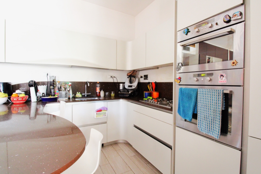 L’appartamento è in ottimo stato conservativo ed è così composto al suo interno: Ampio ingresso finestrato con armadio a muro, salone doppio avente zona relax e zona pranzo e una cucina a vista su misura con penisola in “fragranite”.