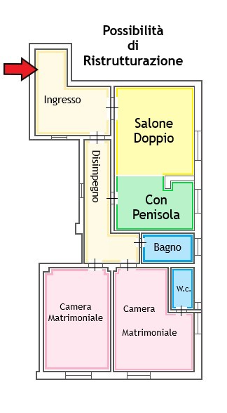 Grazie alla regolarità della planimetria, è possibile modificare in modo semplice la divisione degli spazi interni in base alle singole esigenze abitative, come da planimetrie allegate al presente annuncio.