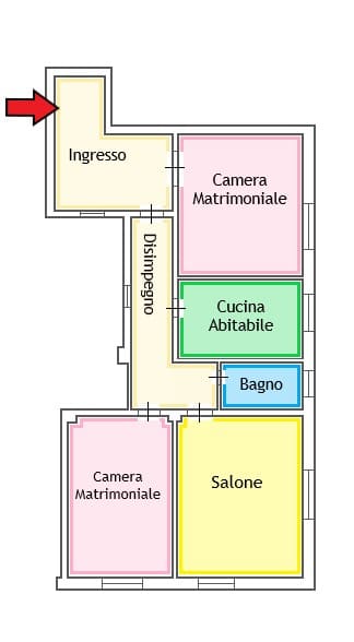 L’affaccio è angolare ed aperto, caratteristica che rende l’appartamento molto luminoso durante tutto l’arco della giornata.